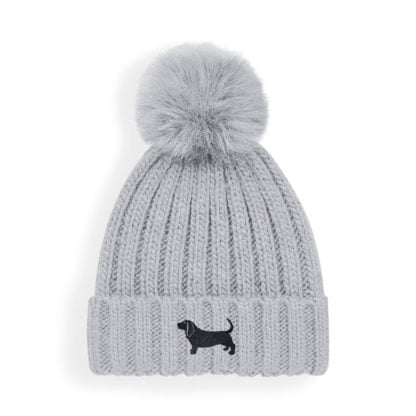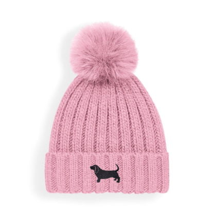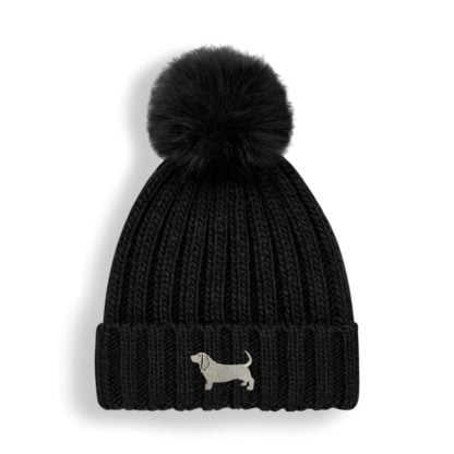 Basset Hound Owner Clothing Gifts, Super Soft Faux Fur Ski Pom Pom Chunky Knit Embroidered Unisex Beanie From The House of Dog