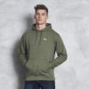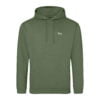 Double fabric hood with self colour drawcord. Front pouch pockets. Ribbed cuffs and hem. Twin needle stitching.