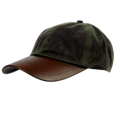 Black Labrador Gifts, Waxed Cotton Leather Peak Waterproof Baseball Cap.