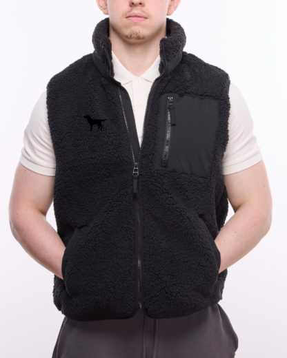 Black Labrador Owner Gifts Embroidered Unisex Eco-Friendly Sherpa Fleece Body Warmer Gilet.