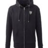 Soft cotton faced fabric: Brushed back fleece: Drop shoulder style: Double fabric hood with self colour drawcord: Metal eyelets and drawcord tips: Full length metal zip: Front pouch pockets: Ribbed cuffs and hem: Twin needle stitching.