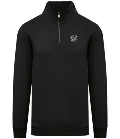 Unisex eco-friendly 1/4 zip high neck sweatshirt.