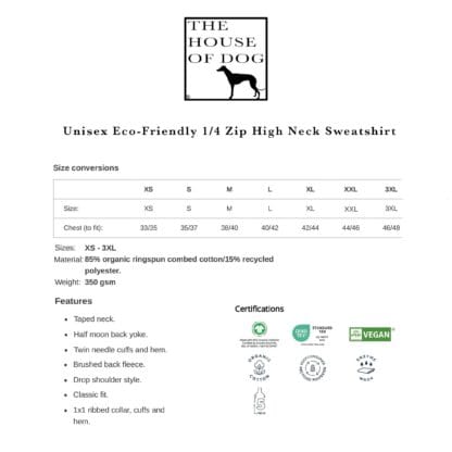 Border Terrier Clothing Gifts Embroidered Unisex Eco-Friendly 1/4 Zip High Neck Heavyweight Sweatshirt From The House Of Dog.