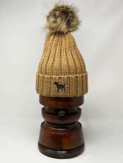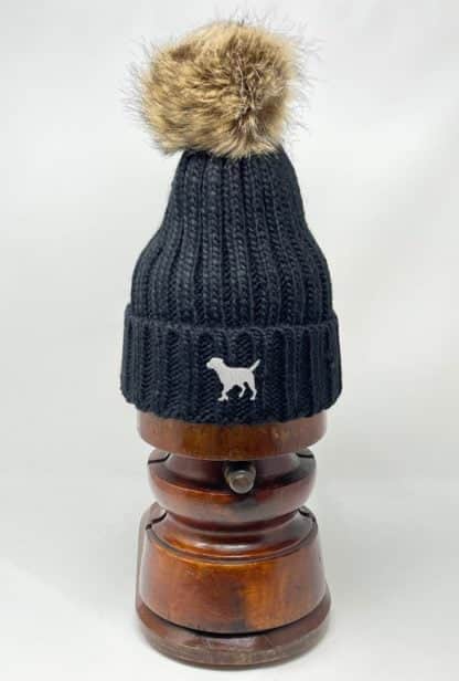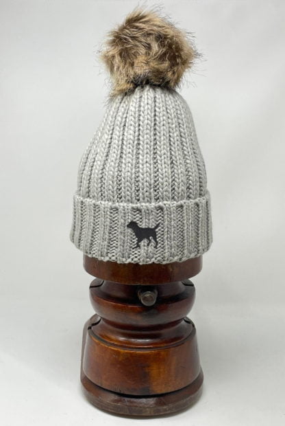 Border Terrier Owner Clothing Gifts, Faux Fur Pom Pom Super Soft Chunky Knit Embroidered Beanie From The House Of Dog.