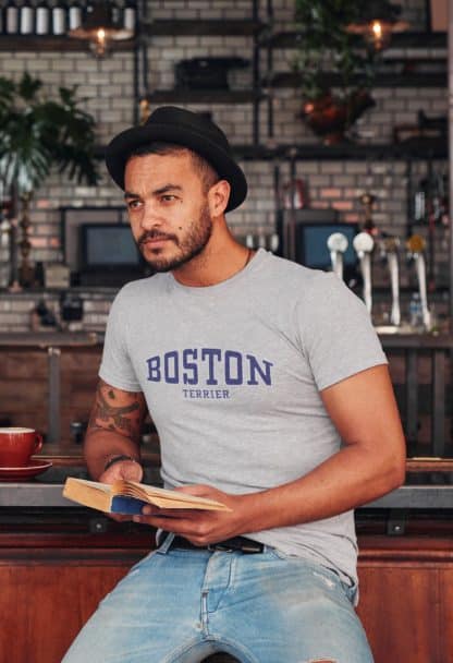 Boston Terrier Clothing Gift Printed Heavyweight Organic Cotton T-Shirt, From The House Of Dog.