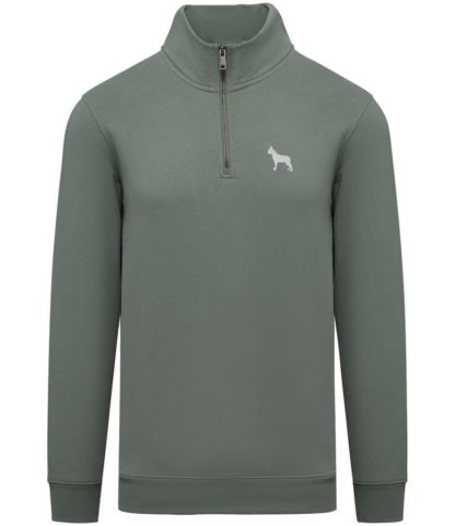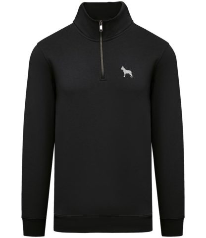 Boston Terrier Clothing Gifts Embroidered Unisex Eco-Friendly 1/4 Zip High Neck Heavyweight Sweatshirt From The House Of Dog.