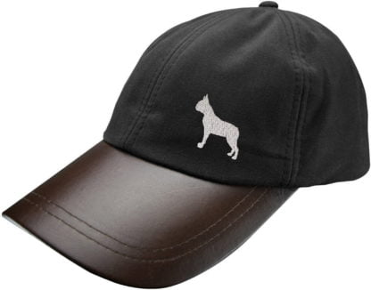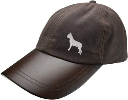 Boston Terrier Owner Clothing Gifts, Waxed Cotton Leather Peak Waterproof Baseball Cap Hat From The House Of Dog.