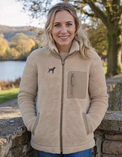 The House Of Dog Sherpa “Teddy’ Fleece is a dog walkers go to garment on chilly days. The texture is soft and fluffy, resembling wool or sheepskin but is 100% vegan and certified by PETA.