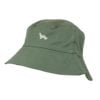 A classic washed chino cotton bucket hat. Embroidered design and white cotton lining inside.
