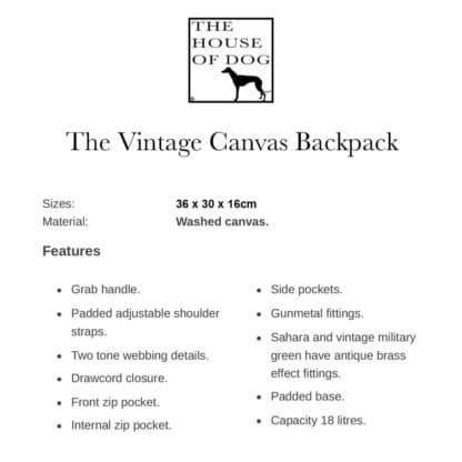 The House Of Dog, Vintage Canvas Back Pack Is A Style Classic.