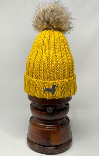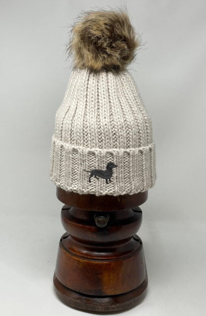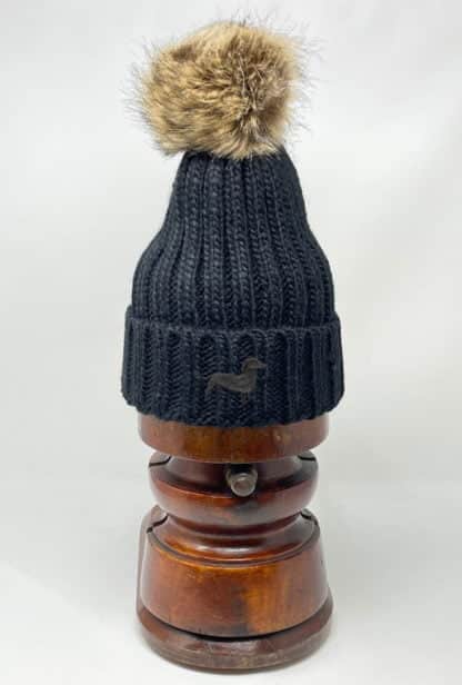 Dachshund Black Daxie Owner Clothing Gifts, Faux Fur Pom Pom Chunky Knit Super Soft Unisex Embroidered Beanie From The House Of Dog.