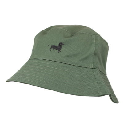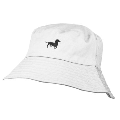 Dachshund Black Daxie Sausage Dog Owner Clothing Gifts. 100% Washed Chino Cotton Embroidered Bucket Sun Hat With White Cotton Lining.
