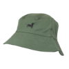 A classic washed chino cotton bucket hat. Embroidered design and white cotton lining inside.
