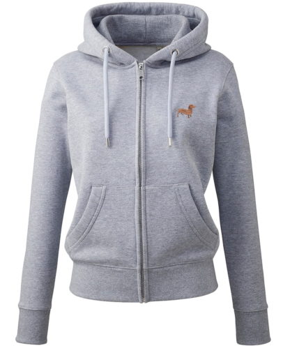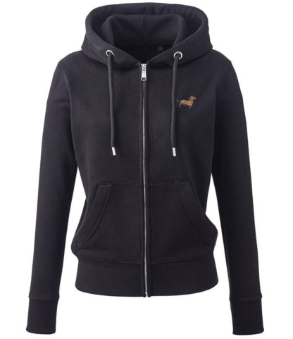 Dachshund Daxie Sausage Dog Gifts Embroidered Ladies Organic Full Zip Hoodie From The House Of Dog.