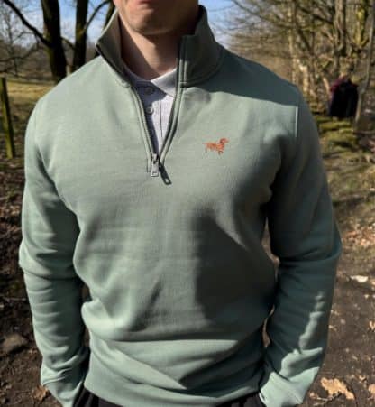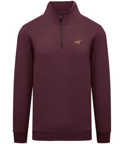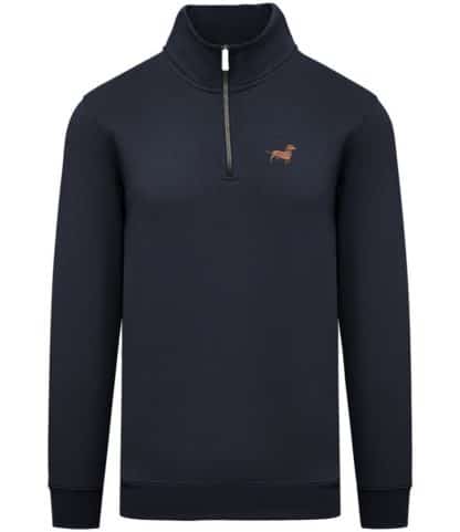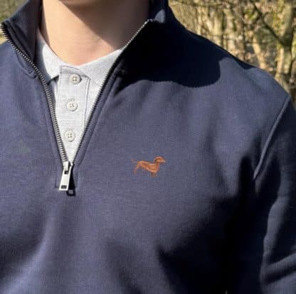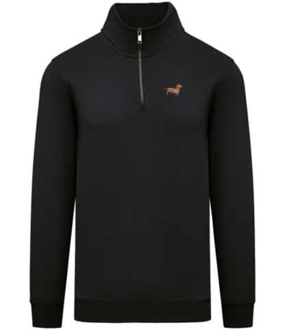 Dachshund doxie sausage dog clothing gifts embroidered unisex eco-friendly 1/4 zip high neck heavyweight sweatshirt from the house of dog.