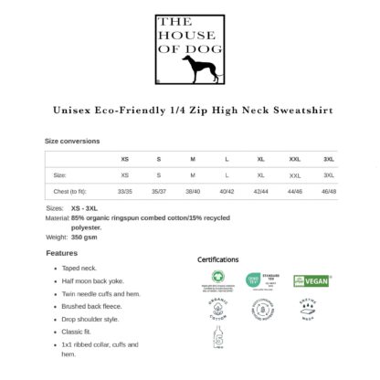 Unisex eco-friendly 1/4 zip high neck sweatshirt.