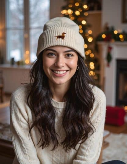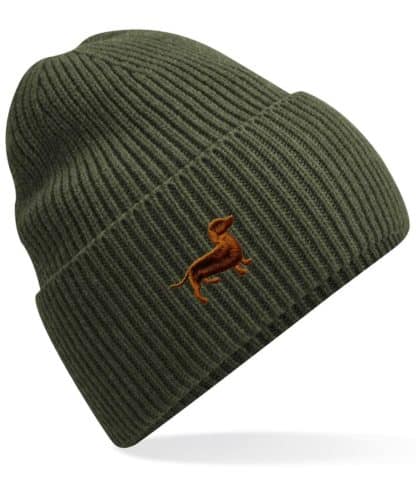 Dachshund Doxie Sausage Dog Clothing Gifts. Oversized Cuffed Beanie Ski Hat From The House Of Dog.