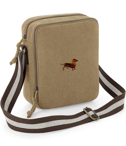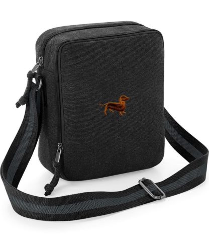 Dachshund Sausage Dog Doxie Embroidered Vintage Canvas Dog Walking Bag. A Unique Product From The House Of Dog.