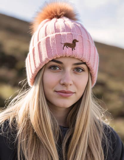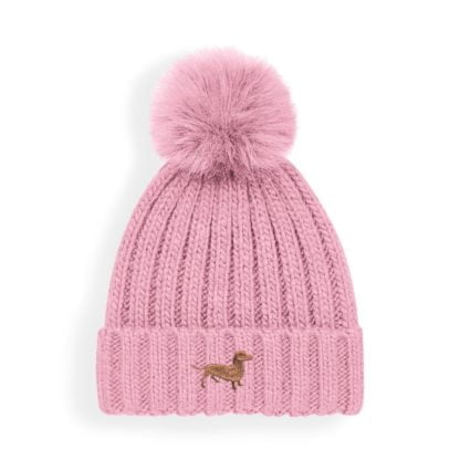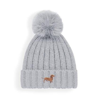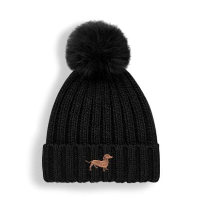 Dachshund Sausage Dog Owner Gifts, Super Soft Faux Fur Ski Pom Pom Chunky Knit Super Soft Embroidered Unisex Beanie From The House of Dog