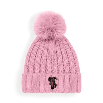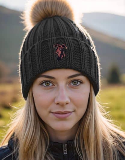 Dobermann Owner Clothing Gifts, Super Soft Faux Fur Pom Pom Chunky Knit Unisex Embroidered Beanie From The House Of Dog