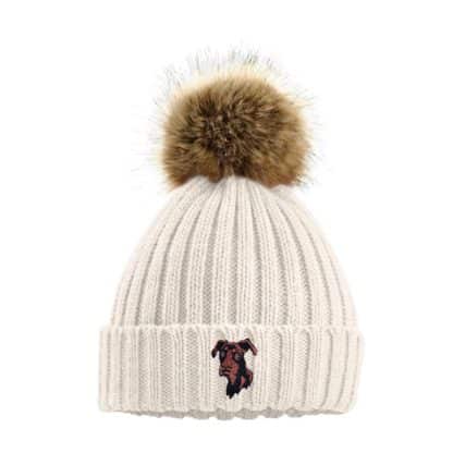 Hard wearing and super soft, warm winter quality pom pom hat with unique embroidered design.