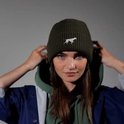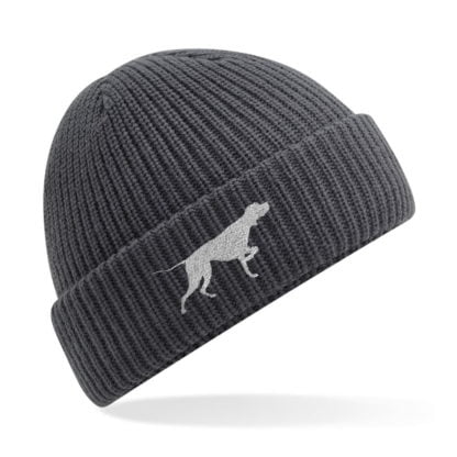 Warm, fleece lined, water repellent beanie with English Pointer embroidered design.