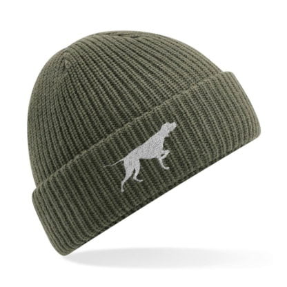 English pointer owner clothing gifts. water repellent thermal beanie ski hat from the house of dog.