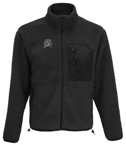 • The sherpa fleece jacket is a relaxed, boxy fit, designed to be worn over other layers of clothing.