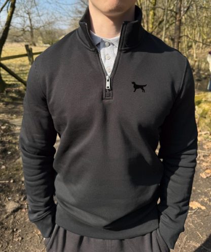 Flat Coated Retriever Clothing Gifts Embroidered Unisex Eco-Friendly 1/4 Zip High Neck Heavyweight Sweatshirt From The House Of Dog.