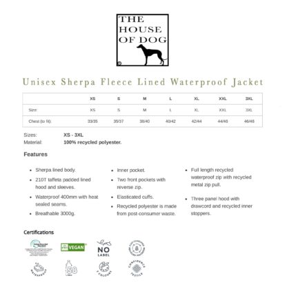 Fox Red Labrador Retriever Gifts Embroidered Unisex Eco-Friendly Sherpa Fleece Lined Waterproof Jacket From The House Of Dog.