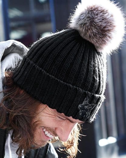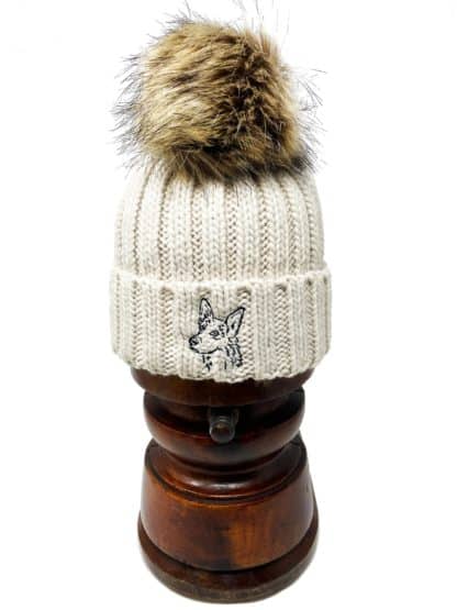 German Shepherd Dog Owner Clothing Gifts, Super Soft Faux Fur Pom Pom Chunky Knit Unisex Embroidered Beanie From The House Of Dog.