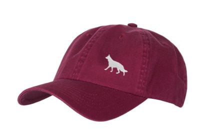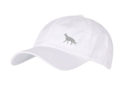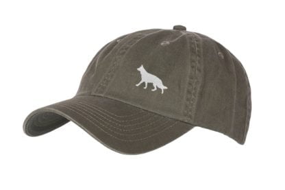 German Shepherd Owner Silhouette Clothing Gifts. 100% Washed Chino Cotton Embroidered 6 Panel Baseball Cap Hat From The House Of Dog.