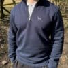 Unisex eco-friendly 1/4 zip high neck sweatshirt.