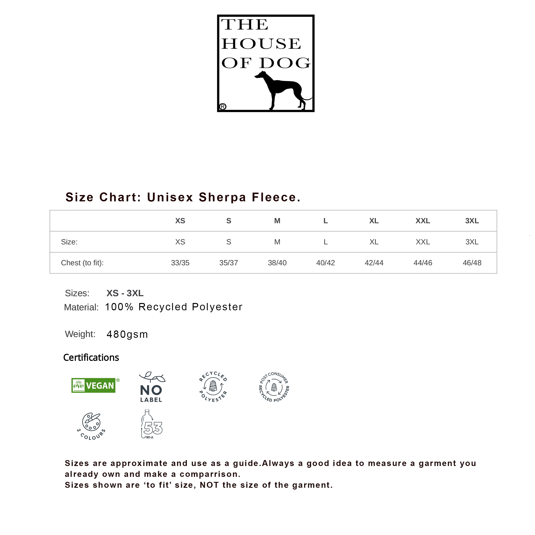 Heavyweight, 480gsm, fully bonded, double sided sherpa fleece jacket, made from 100% recycled polyester. PETA approved vegan and certified by the Sustainable Apparel Coalition and the Global Recycle Standard.