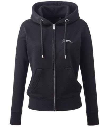 Greyhound lurcher gifts embroidered ladies organic full zip hoodie from the house of dog.