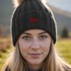 Hard wearing and super soft, warm winter quality pom pom hat with unique embroidered design.