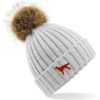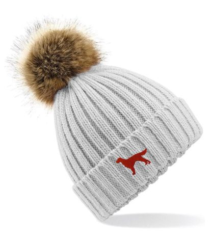 Irish Red Setter Owner Clothing Gifts, Faux Fur Pom Pom Super Soft Chunky Knit Unisex Embroidered Beanie From The House Of Dog.