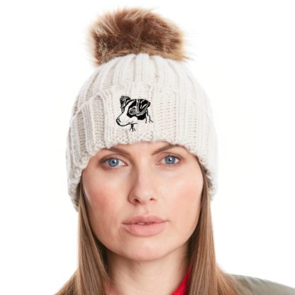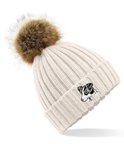 Jack Russell Clothing Gifts, Faux Fur Pom Pom Chunky Knit Super Soft Embroidered Beanie From The House Of Dog.