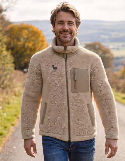 The House Of Dog Sherpa “Teddy’ Fleece is a dog walkers go to garment on chilly days. The texture is soft and fluffy, resembling wool or sheepskin but is 100% vegan and certified by PETA.