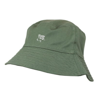 A classic washed chino cotton bucket hat. Embroidered design and white cotton lining inside.