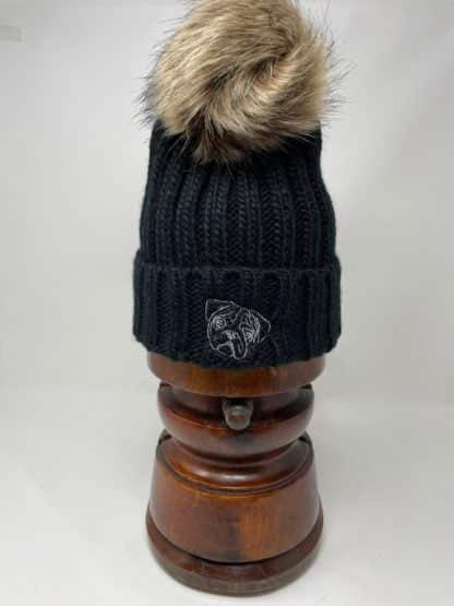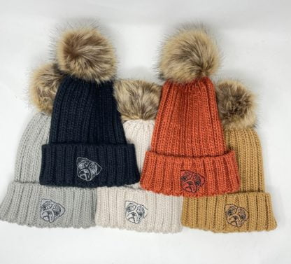 Hard wearing and super soft, warm winter quality pom pom hat with unique embroidered design. A unique product from The House of Dog. A brilliant and unique gift idea for Father’s or Mother’s Day and Birthdays and Christmas.
