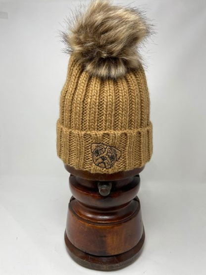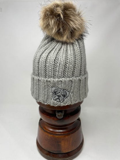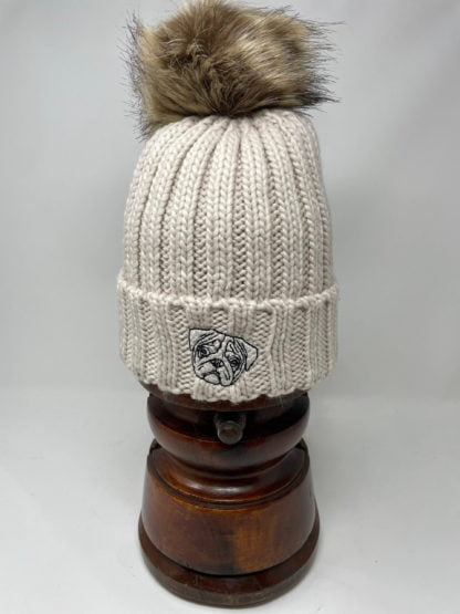 Pug Owner Clothing Gifts, Faux Fur Pom Pom Chunky Knit Super Soft Unisex Embroidered Beanie, From The House Of Dog.