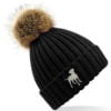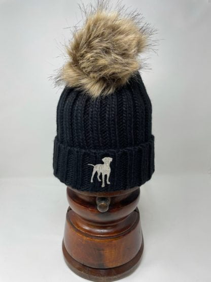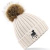 Hard wearing and super soft, warm winter quality pom pom hat with unique embroidered design. A unique product from The House of Dog. A brilliant and unique gift idea for Father’s or Mother’s Day and Birthdays and Christmas.