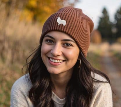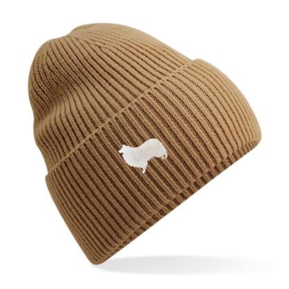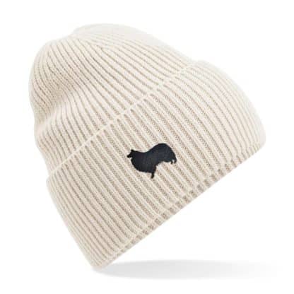 Shetland Sheepdog Sheltie Owner Clothing Gifts. Oversized Cuffed ‘Eco Friendly’ Beanie Ski Hat From The House Of Dog.