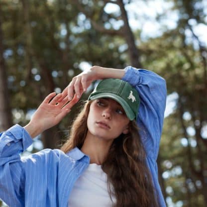 LOW PROFILE: Distressed Vintage CAP: 100% Brushed Washed Cotton. Distressed Vintage styling. Low profile 6 panel design. Soft unstructured crown. Pre-curved peak. Stitched ventilation eyelets. Self-fabric strap with brass effect buckle.