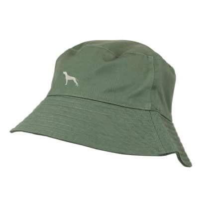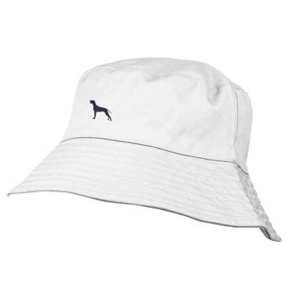 Weimaraner Owner Clothing Gifts. Chino Cotton Embroidered Bucket Sun Hat With White Cotton Lining From The House Of Dog.