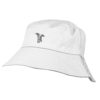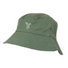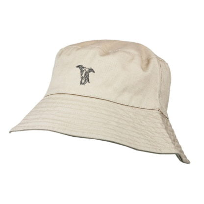 A classic washed chino cotton bucket hat. Embroidered design and white cotton lining inside.