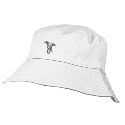 Whippet, Italian Greyhound, Podenco Owner Gifts. Cotton Embroidered Bucket Sun Hat With White Cotton Lining From The House Of Dog.