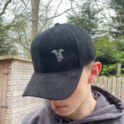 whippet-lurcher-galgo-podenco-owner-clothing-gifts-faux-suede-leather-baseball-cap-hat-from-the-house-of-dog-2