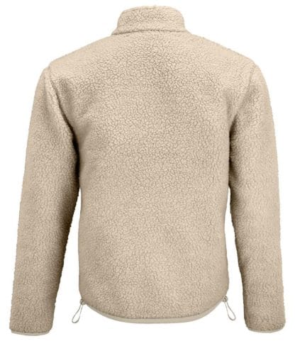 • The sherpa fleece jacket is a relaxed, boxy fit, designed to be worn over other layers of clothing.